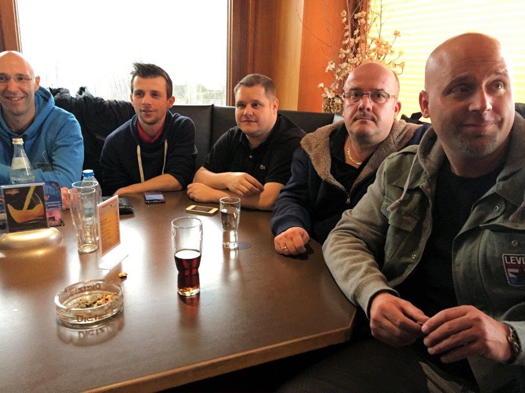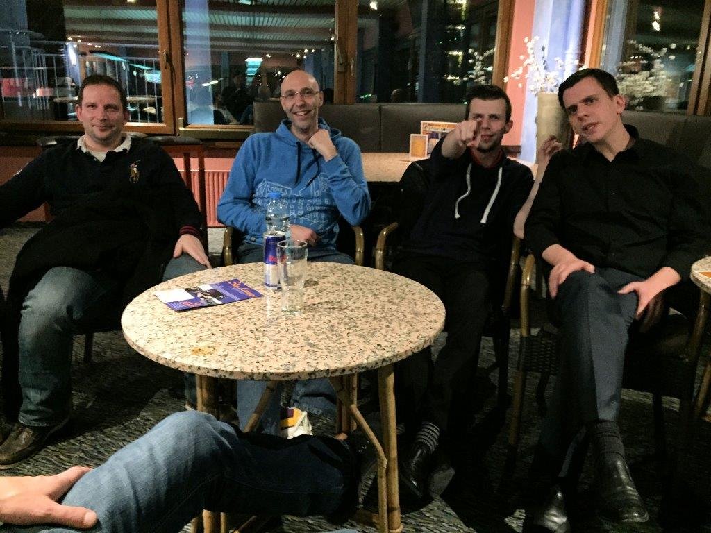 Im Foto die Top 4 v.l.: Christian Reimering, Klaus Hebestreit, Mario He, Andreas Roschkowski, Peter Flicker (Organisator) und Sebastian Spohn (Turnierleiter).