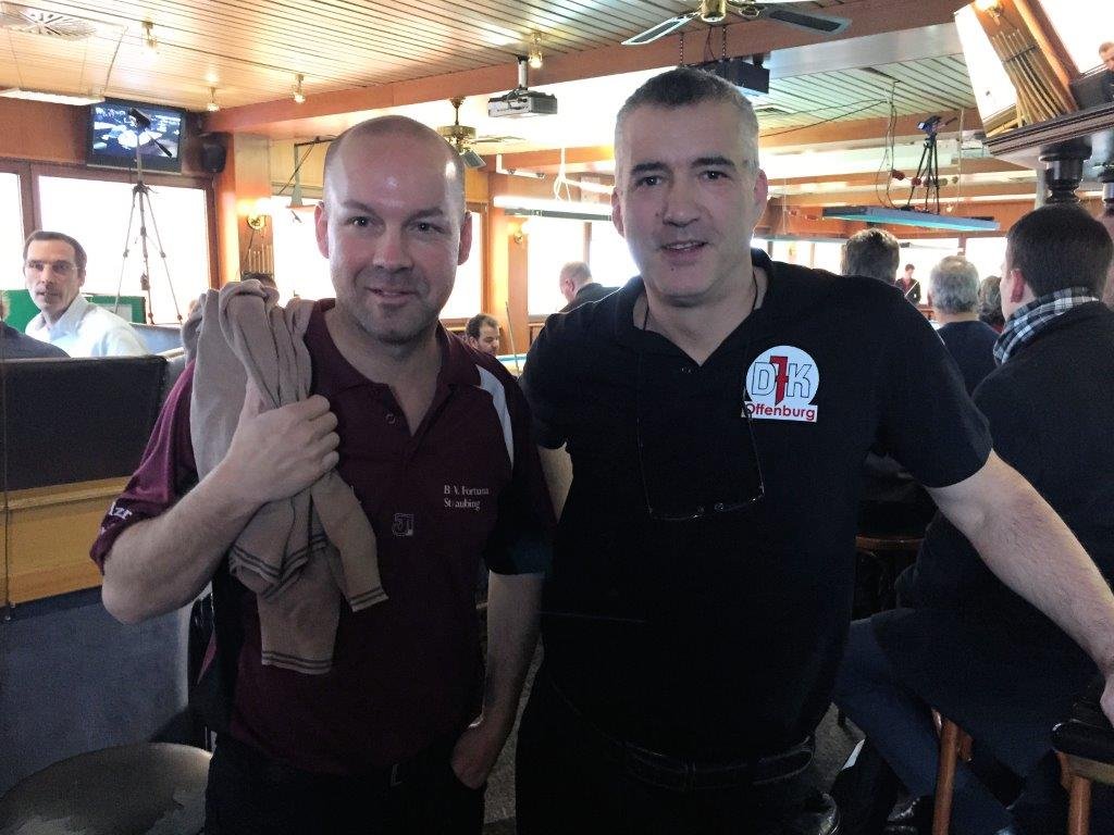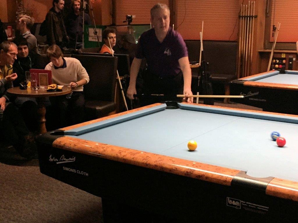 Exakt das gleiche Schicksal widerfuhr aber auch anderen. So beispielsweise Martin Poguntke in seinem Achtelfinale gegen Klaus Hebestreit aus Osnabrück. Bei 8:8 bekam er einen ganz fürchterlichen „Kick“ auf die Neun und setzte diese neben das Loch. Parallel erlaubte sich Roman Hybler (BSV Fürstenfeldbruck) einen völlig ungewohnten Fauxpas bei eigener 8:7-Führung, der Snooker-Profi Alexander Ursenbacher zu einem nicht mehr erwartenden Besuch am Tisch einlud. Der Schweizer Jungstar ergriff die Gelegenheit und ließ seinen Widersacher nicht mehr an den Tisch.
